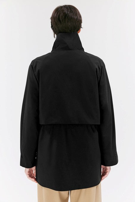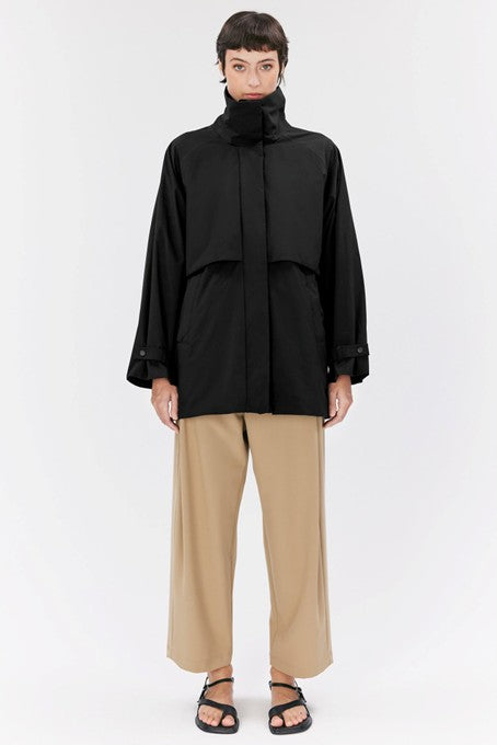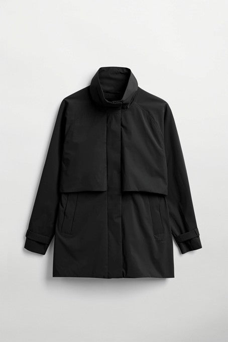 Polly is a short trench-inspired jacket made from Matte Motion 3K fabric. The material is soft and luxurious with a matte finish, creating a dressed look that brings a touch of water-resistant performance to the table. Details include a trench yoke in the front and back, adjustable cuffs and waist, taped vital seams, and raglan sleeves. Wear Polly for a versatile look that brings function to sophisticated style.