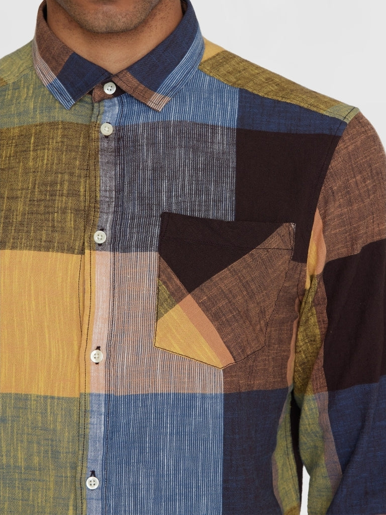 This is a great staple for your wardrobe that is also a conscious choice. Made of 100% organic cotton, this checked shirt is soft and comfortable to wear. The regular fit shirt has a multi-colored checkered pattern, a chest pocket, and button-down closure.