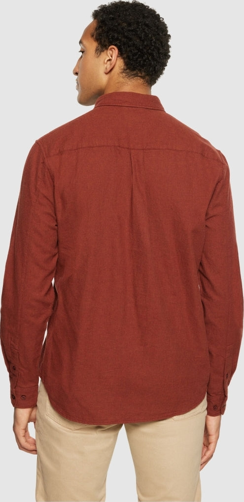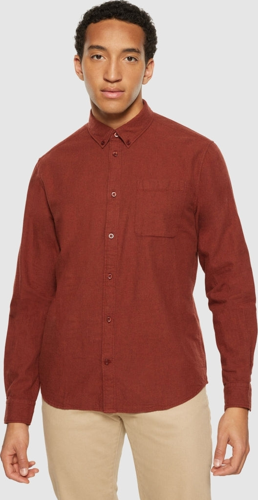 Regular fit melangé flannel shirt Fired Brick