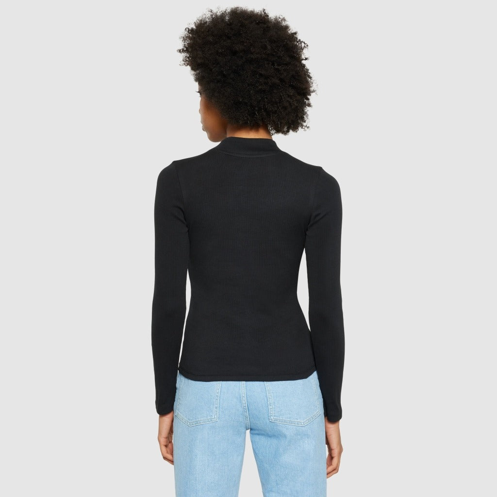 Das langärmeliges Ripp-T-Shirt besteht aus weicher Bio-Baumwolle mit einem Hauch von Stretch für Bewegungsfreiheit und eine taillierte Passform. Das T-Shirt hat eine normale Passform mit breiten Rippbündchen für eine strukturierte Oberfläche und einen hohen Kragen.