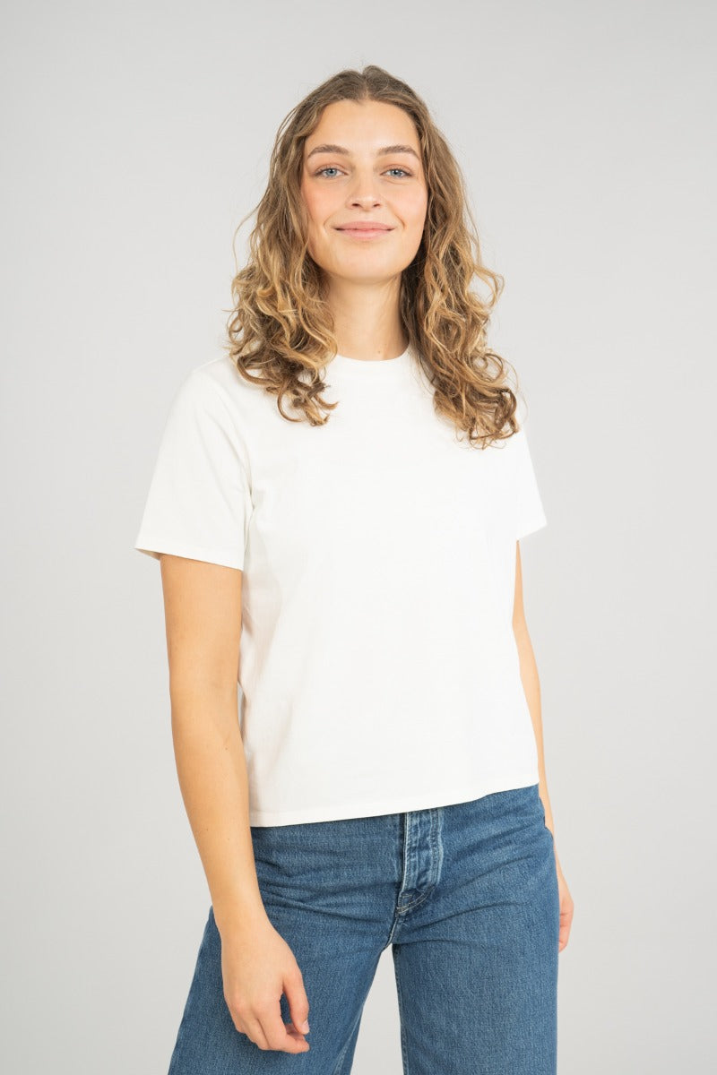 Boxy T-Shirt aus dicht gestricktem Jersey in hochwertiger Bio-Baumwolle. Breiter Kragen