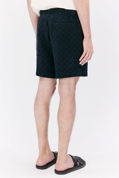 Ryan ist eine kurze Hose aus Sunflower Waffle-Stoff. Das Material hat ein unverwechselbares Waffelgewebe, das wie eine Blume gewebt ist und diesem Grundnahrungsmittel Textur, Tiefe und Komfort verleiht. Zu den Details gehören Taschen in den Seitennähten, ein versteckter elastischer Kordelzug in der Taille und eine EE-Stickerei auf dem Rücken. Kombinieren Sie Ryan mit dem Favian Hemd für ein entspanntes Sommerset, das Sie am Urlaubsort tragen können.
