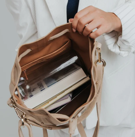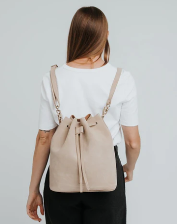 Der wandelbare Saku-Bucket-Bag ist ein wahres Sinnbild für nachhaltigen Stil. Gefertigt aus lokal bezogenem, Wildleder, vereint diese Bucket-Bag minimalistisches Design mit urbanem Flair. Ihr glattes Leder machen sie zu einer bewussten Wahl für modebewusste Individuen. Diese Tasche kann auf vier verschiedene Arten getragen werden: als Rucksack, Schultertasche, Umhängetasche oder Handtasche. Sie verfügt über ein geräumiges Hauptfach, eine leicht zugängliche Innentasche und ein Fach mit Reißverschluss. Der Kordelzugverschluss ist leicht zu öffnen und zu schließen und verleiht gleichzeitig einen Hauch von Eleganz.