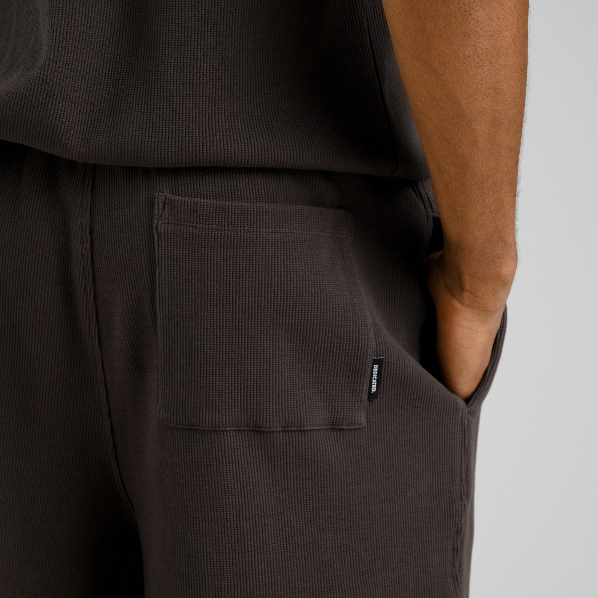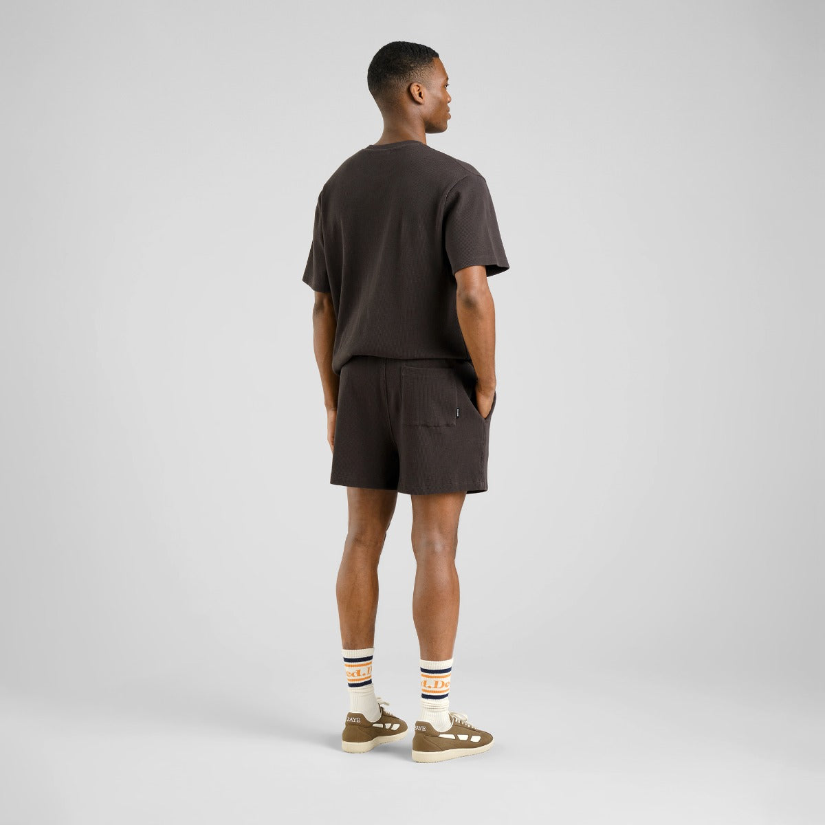 Locker sitzende Shorts in Waffelstruktur mit elastischem Bund und Kordelzug. Hergestellt aus Bio-Baumwolle.