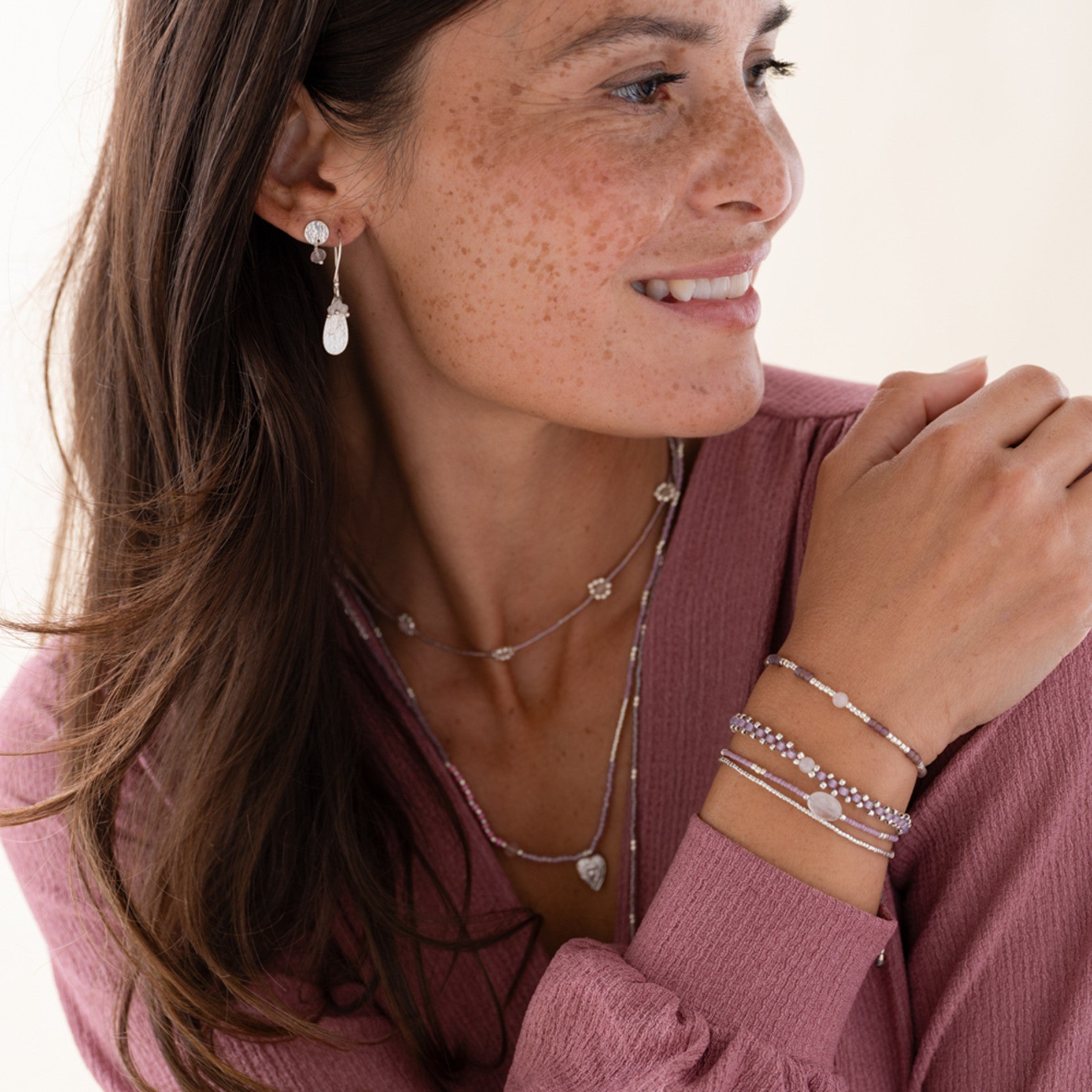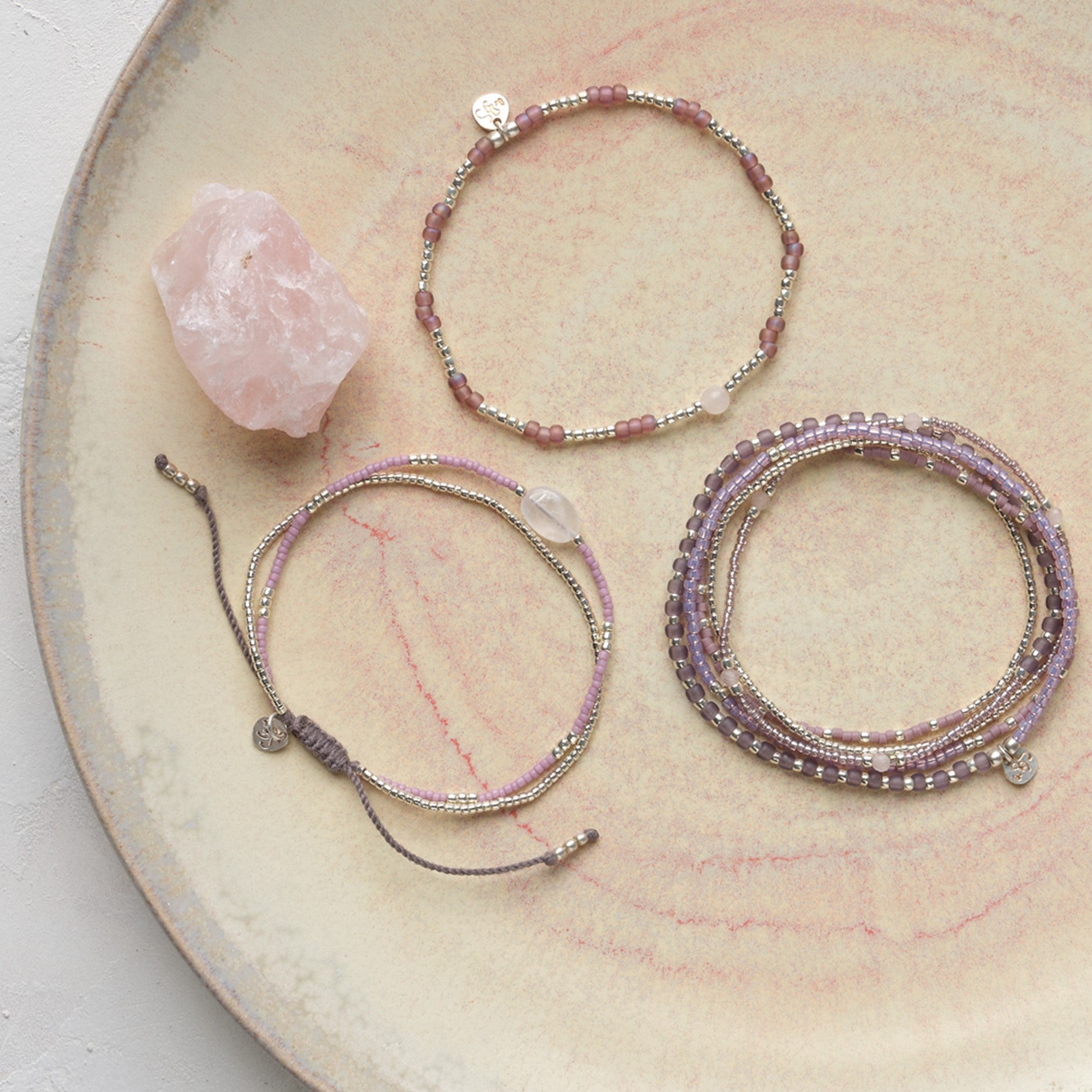 Splash Rosenquarz Silberfarbige Armband