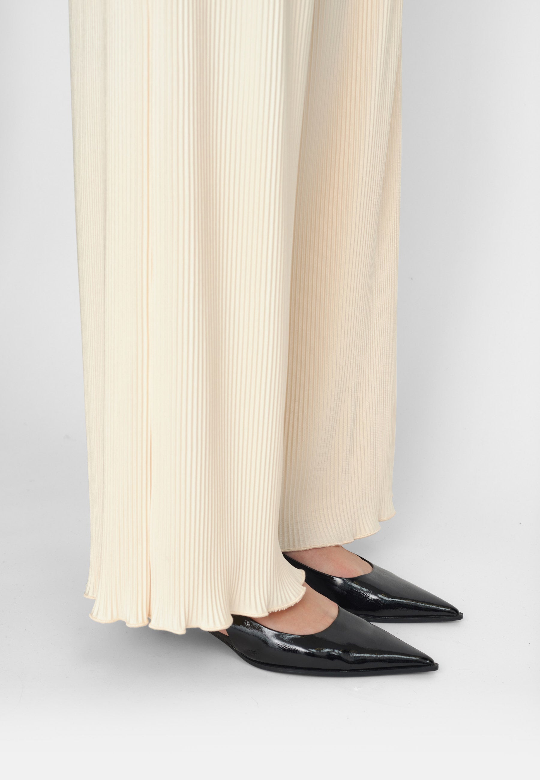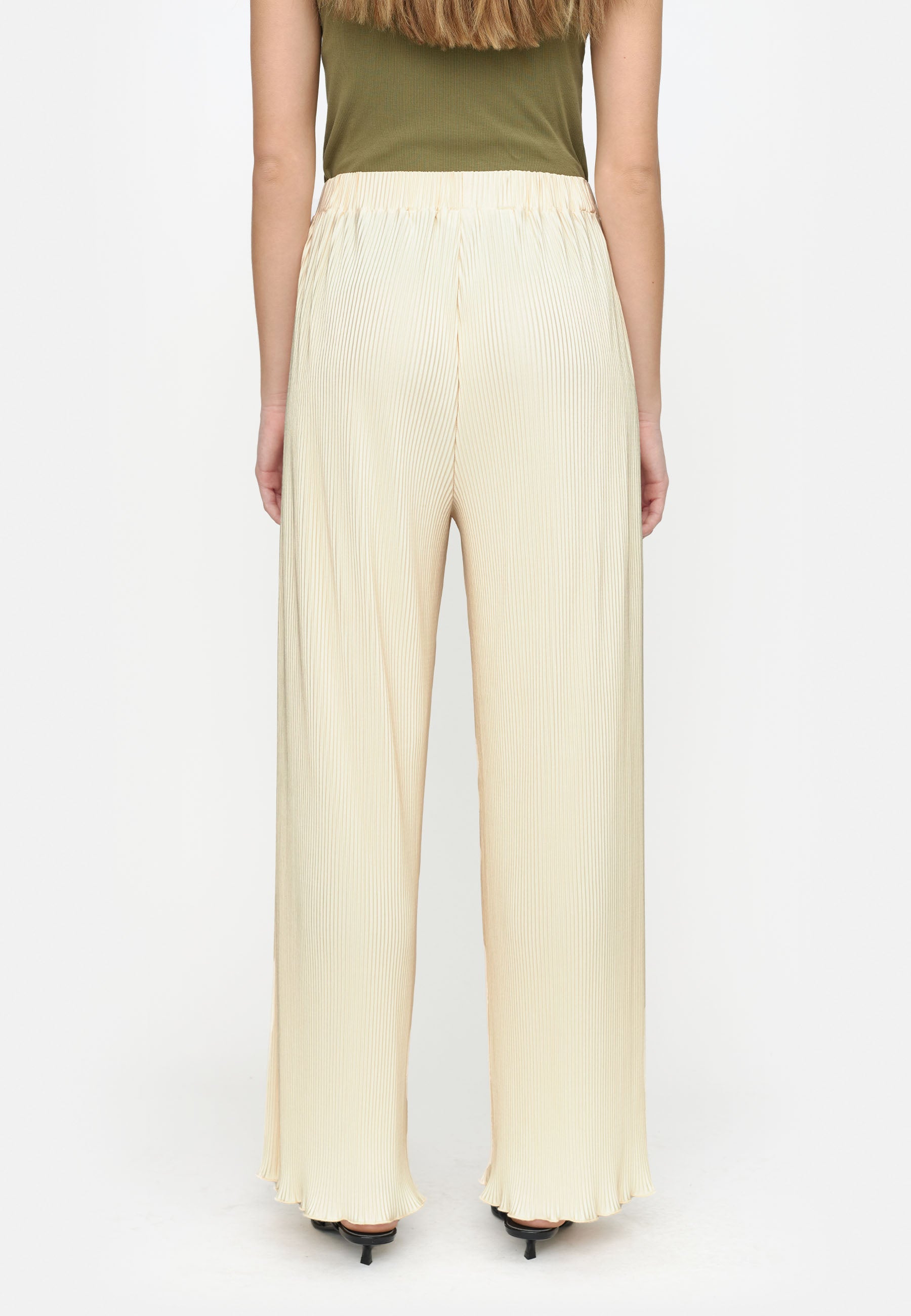 Created with plisse, elastic waist and raw edges.