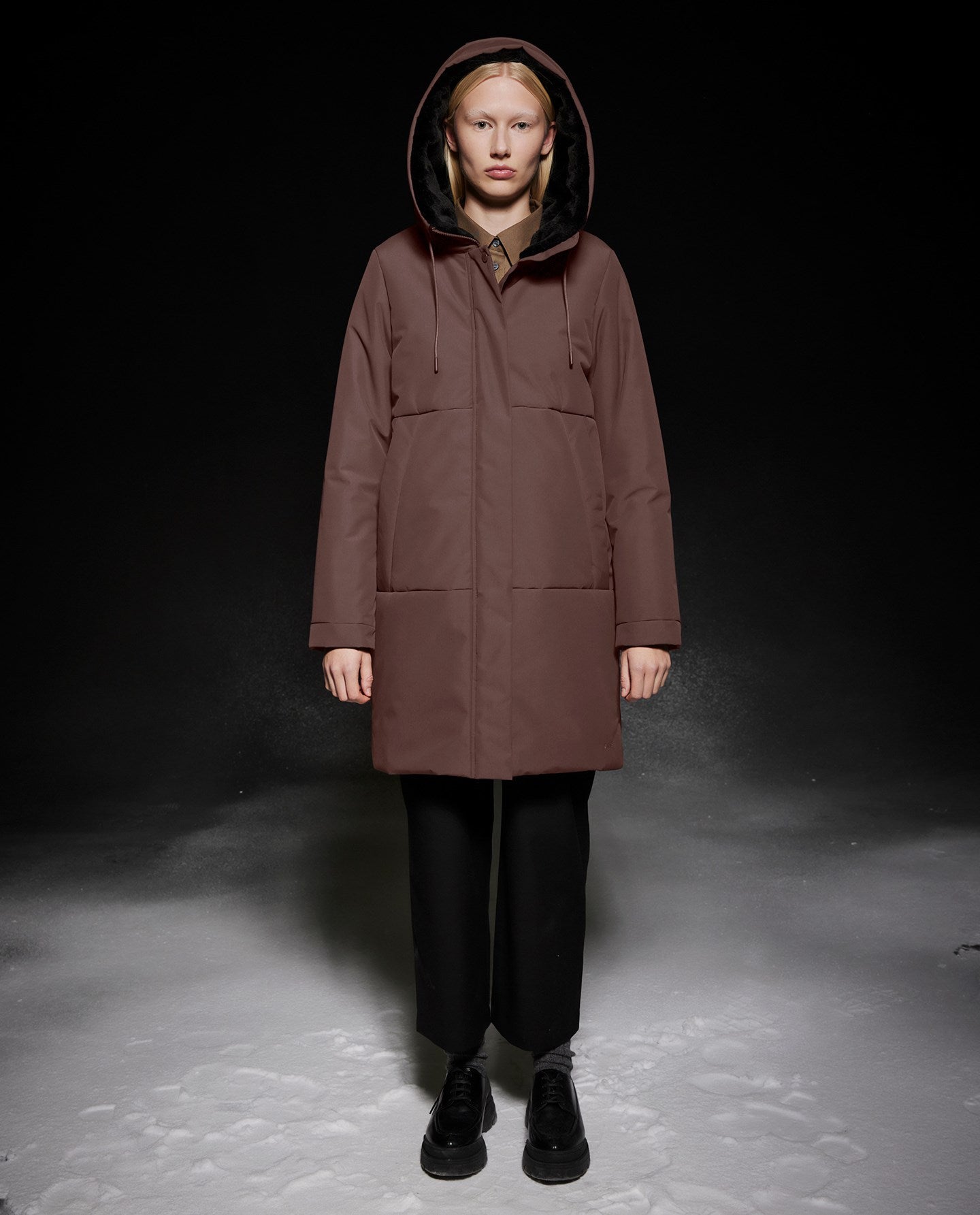 Tiril is the modern heavy winter parka in a straight silhouette with a generous faux fur-lined hood. The jacket is padded with Thermore® EVOdown®, a down imitation with exceptional insulating qualities. A waterproof membrane protects from heavy downpour, making Tiril a true survivor during those harsh winters lying ahead. If between sizes, choose one size down. The model is 176 cm tall and wearing a size S. Length of the winter jacket: 92 cm (size S).