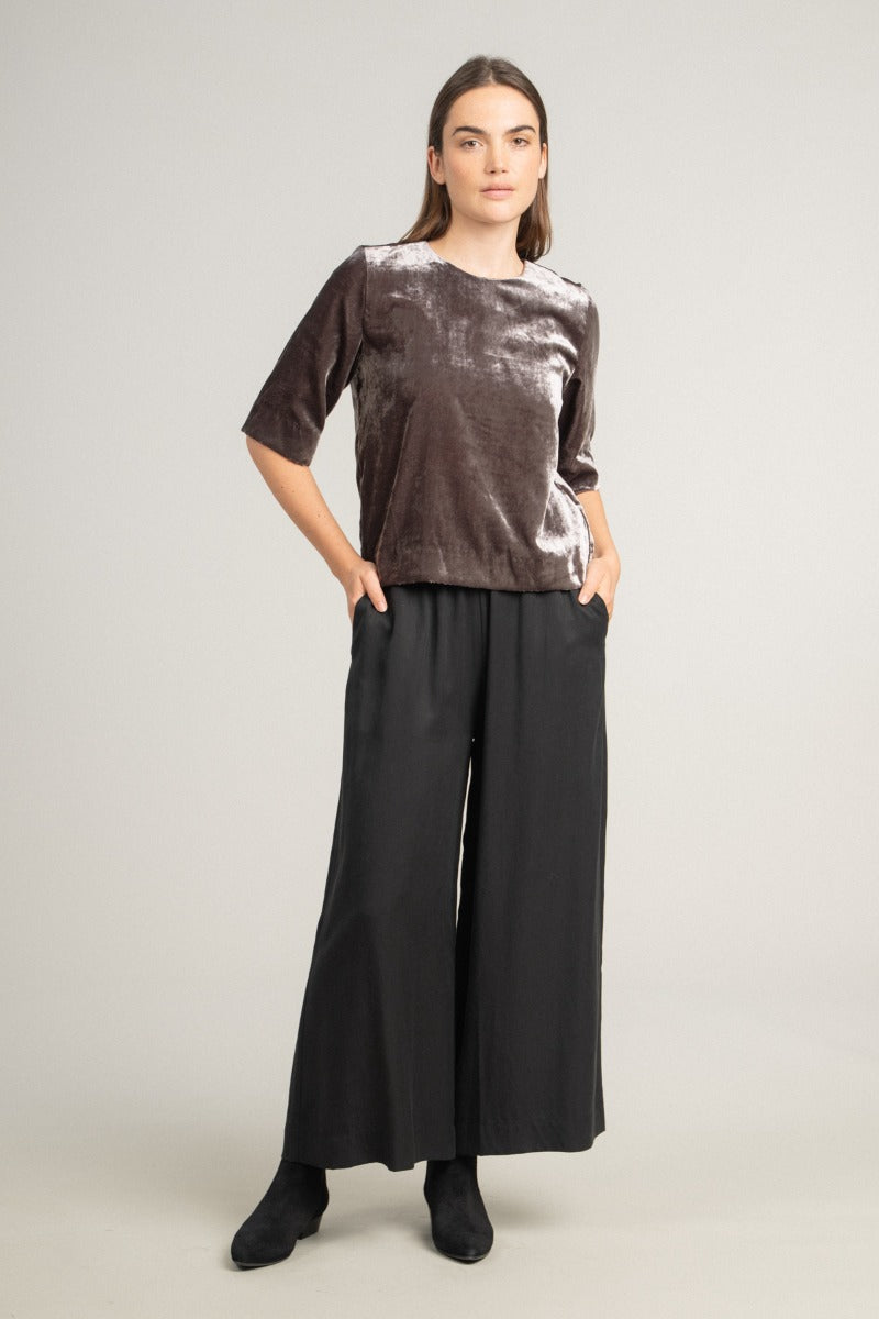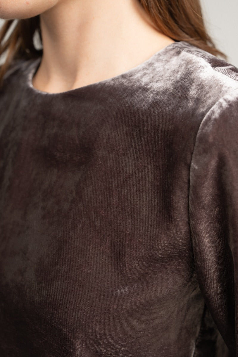 T-Shirt mit hohem Kragen aus funkelndem Velvet. Für glitzernde Abende.