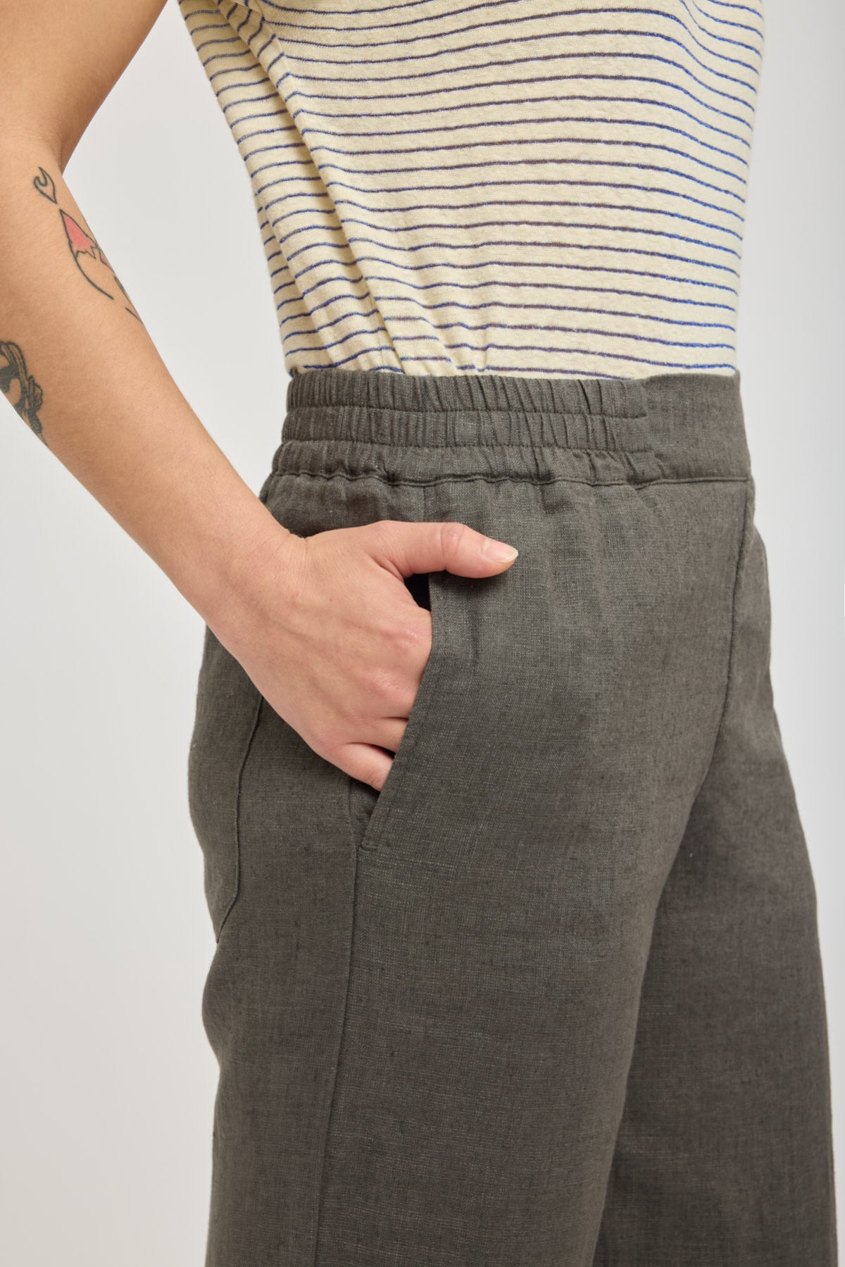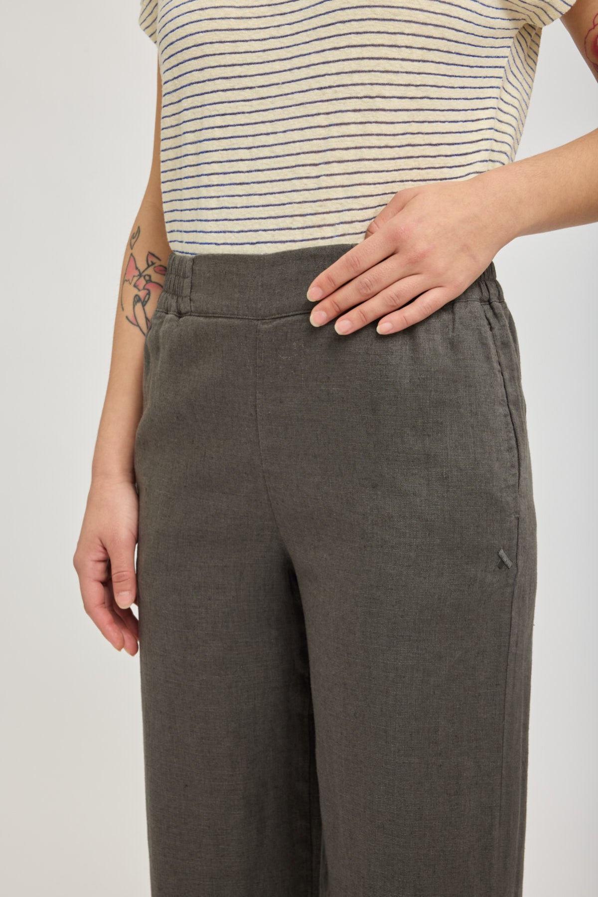 Die lockere Hose ist aus 100% Leinen hergestellt, damit sie den ganzen Tag kühl und bequem bleibt.